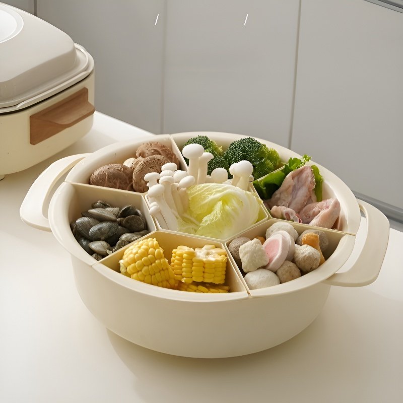จานแบ่งหลายฟังก์ชันสำหรับใส่อาหารและหม้อ